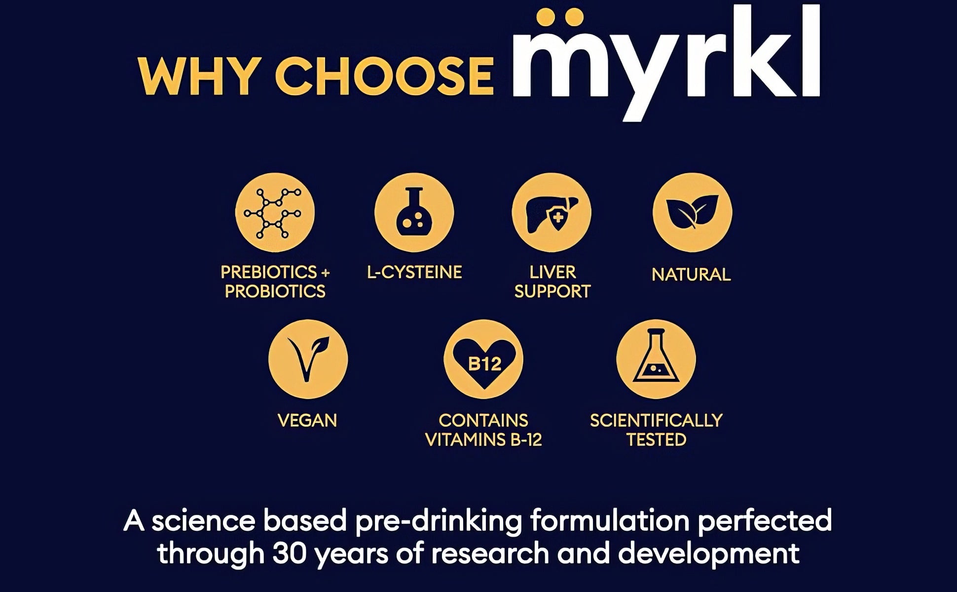 Myrkl é um suplemento alimentar patenteado que contém uma fórmula baseada na ciência, composta por bactérias de alto desempenho, L-cisteína e vitamina B12.