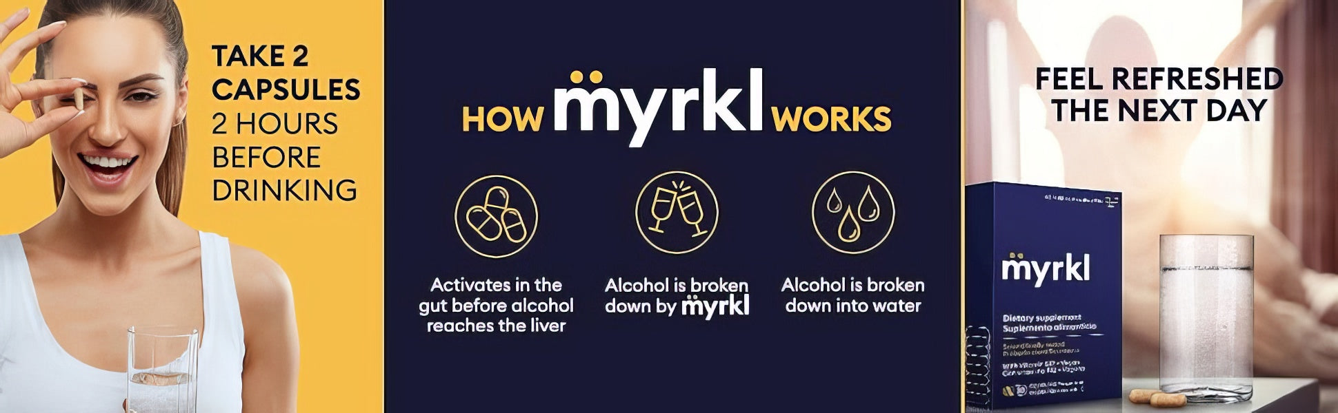 Tome duas cápsulas de Myrkl com um copo de água. Para uma eficácia máxima, faça-o duas horas antes da sua primeira bebida.